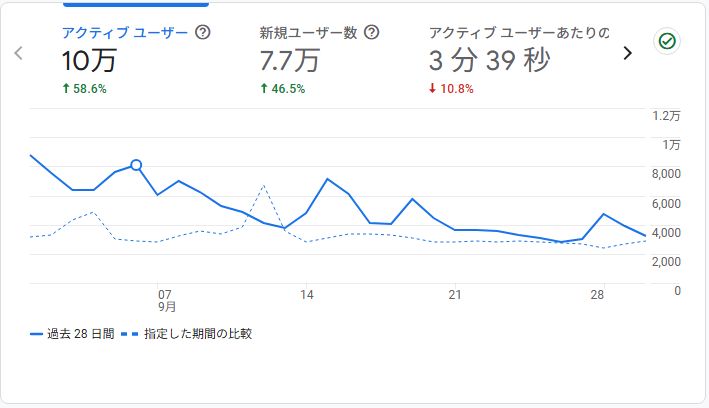 2025年10月1日 [アクセスレポート]訪問ユーザー数が対前年158.6%と大幅に伸長しましたが、その要因はgoogle砲によるもので偶発的です。